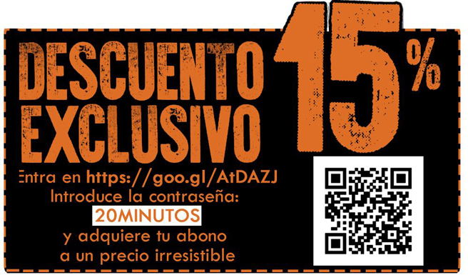 Ahora podrás comprar tu abono con un descuento del 12€ por ser lector de 20minutos. Haz click aquí e introduce el codigo de descuento: 20MINUTOS