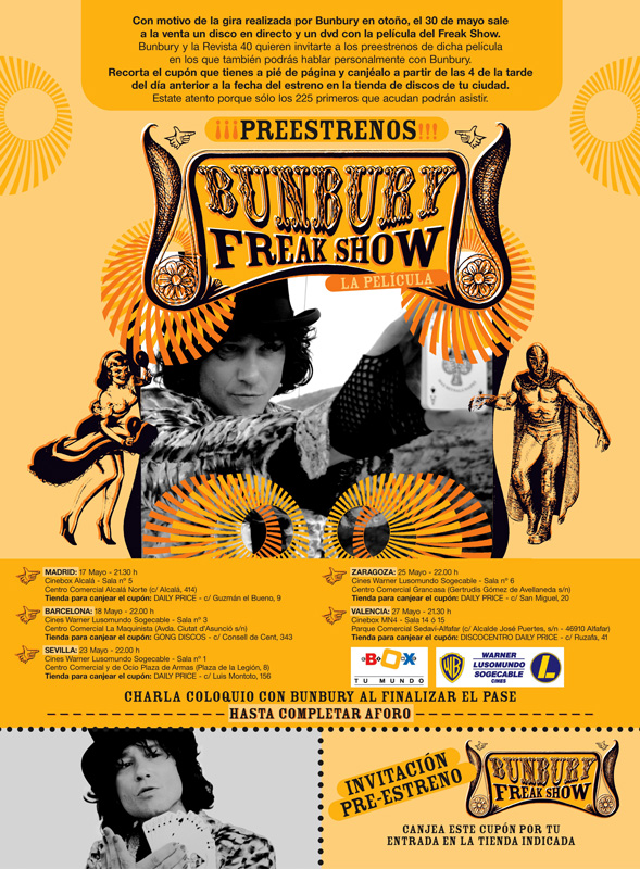 PROXIMA GIRA EN MAYO Y ''BUNBURY FREAK SHOW: LA PELÍCULA''. |